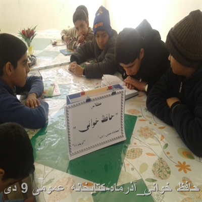 برنامه حافظ خوانی نیز از سری برنامه های هفتگی کتابخانه عمومی 9 دی بود که در هفته وحدت نیز به اجرا درآمد. در این جلسه ابتدا مسئول کتابخانه نکاتی در مورد زندگی حافظ مطرح کرد و سپس اعضای فعال درگروه حافظ شناسی به خواندن گزیده ای از اشعار حافظ پرداختند .